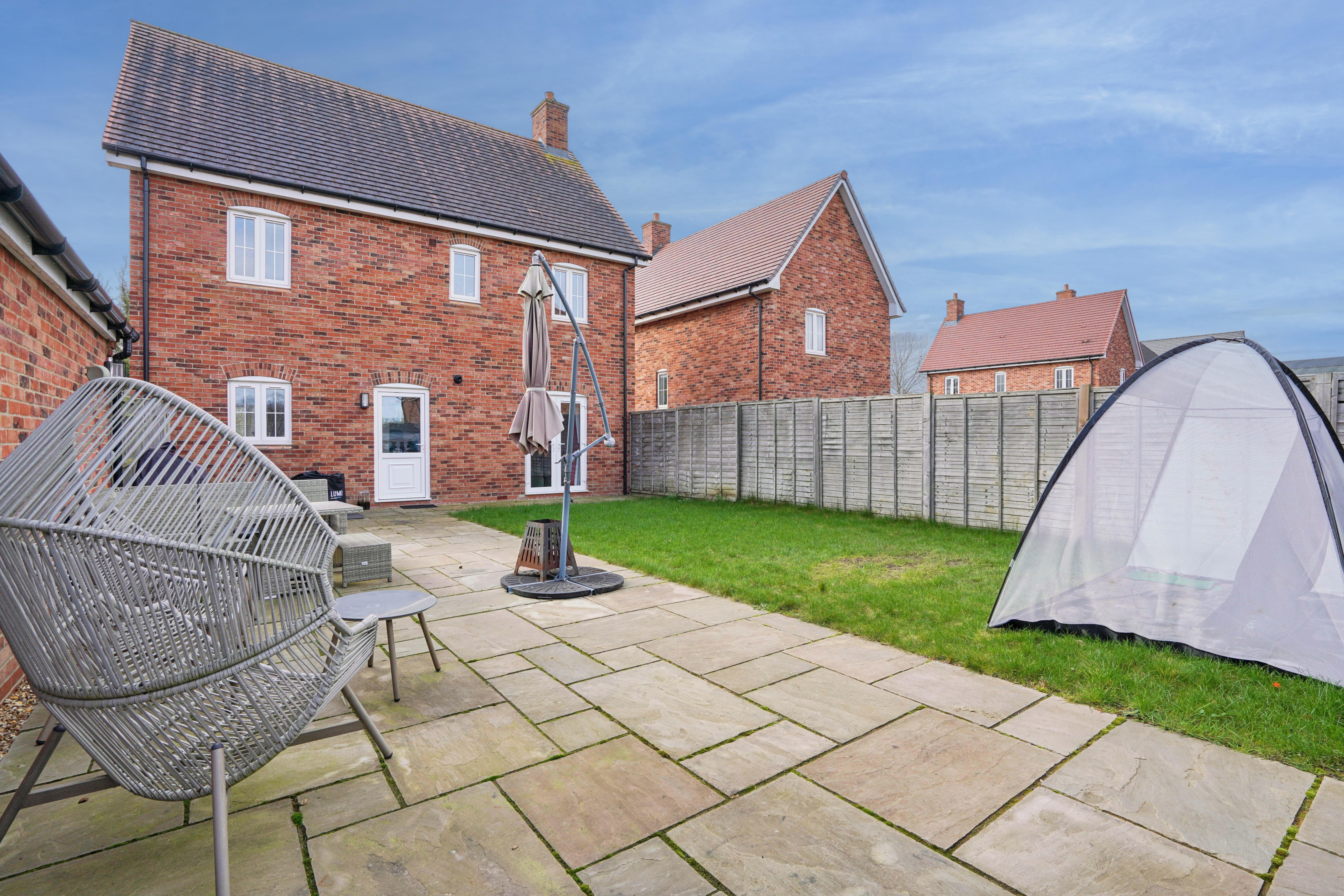 A four bedroom detached family home on the edge of the village with a large kitchen/family room, two further reception rooms and a utility room. Cloakroom, en-suite shower room and garage with extra driveway parking.