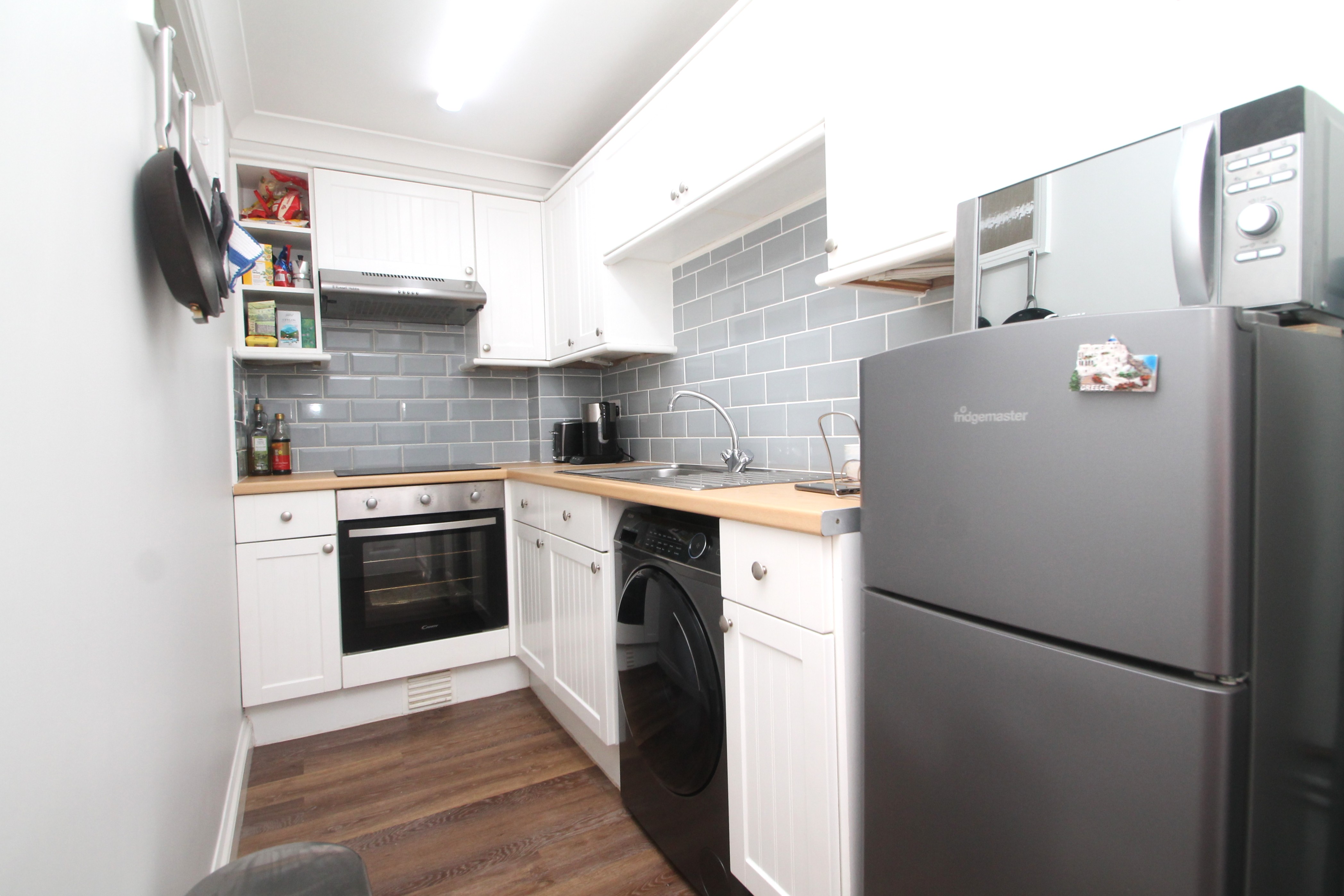 There are two bedrooms, one double smaller one that works well as an home office or study. The well fitted kitchen with built-in oven and hob is open plan to the sitting room which has a bay window overlooking the front elevation.