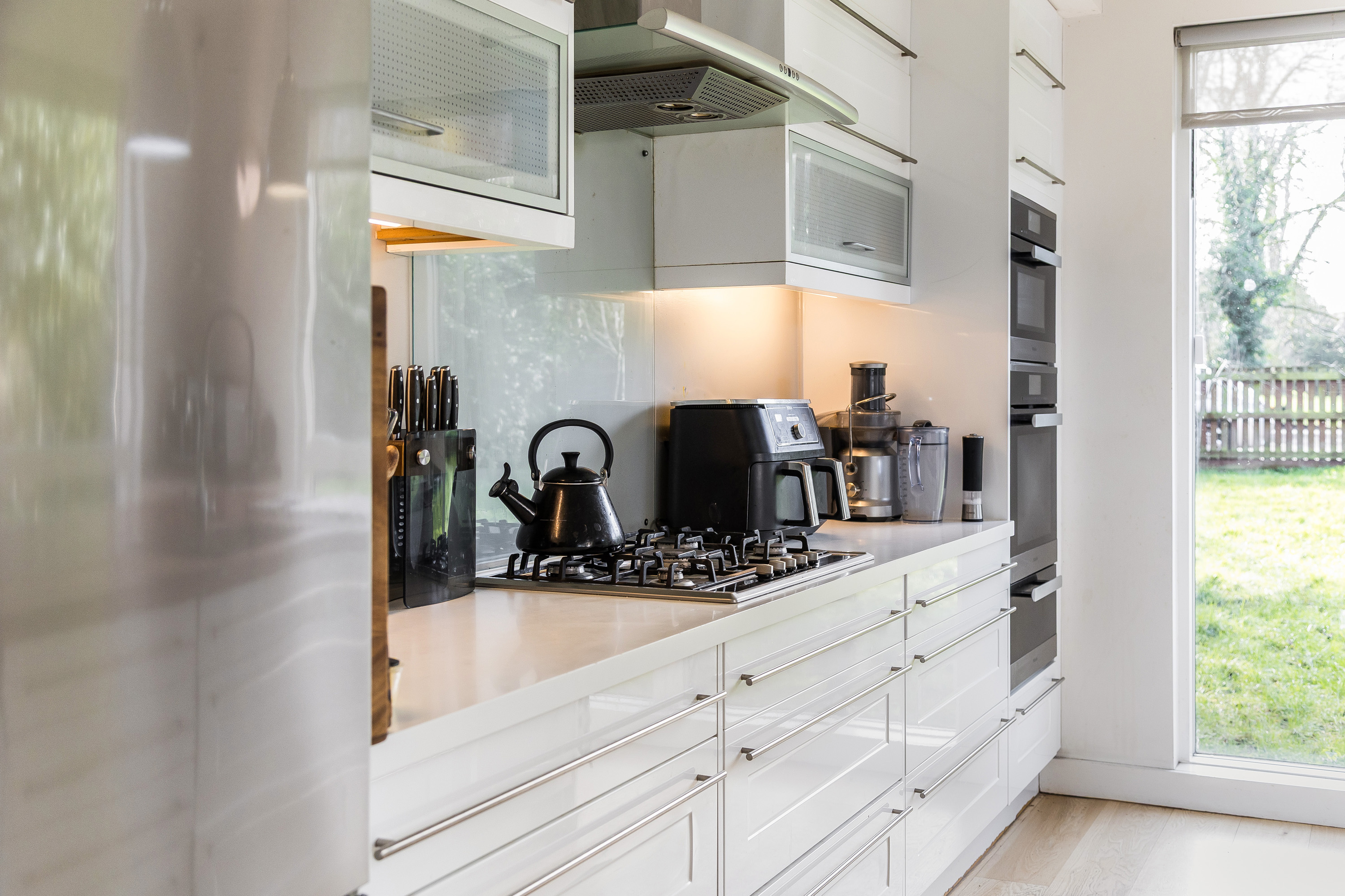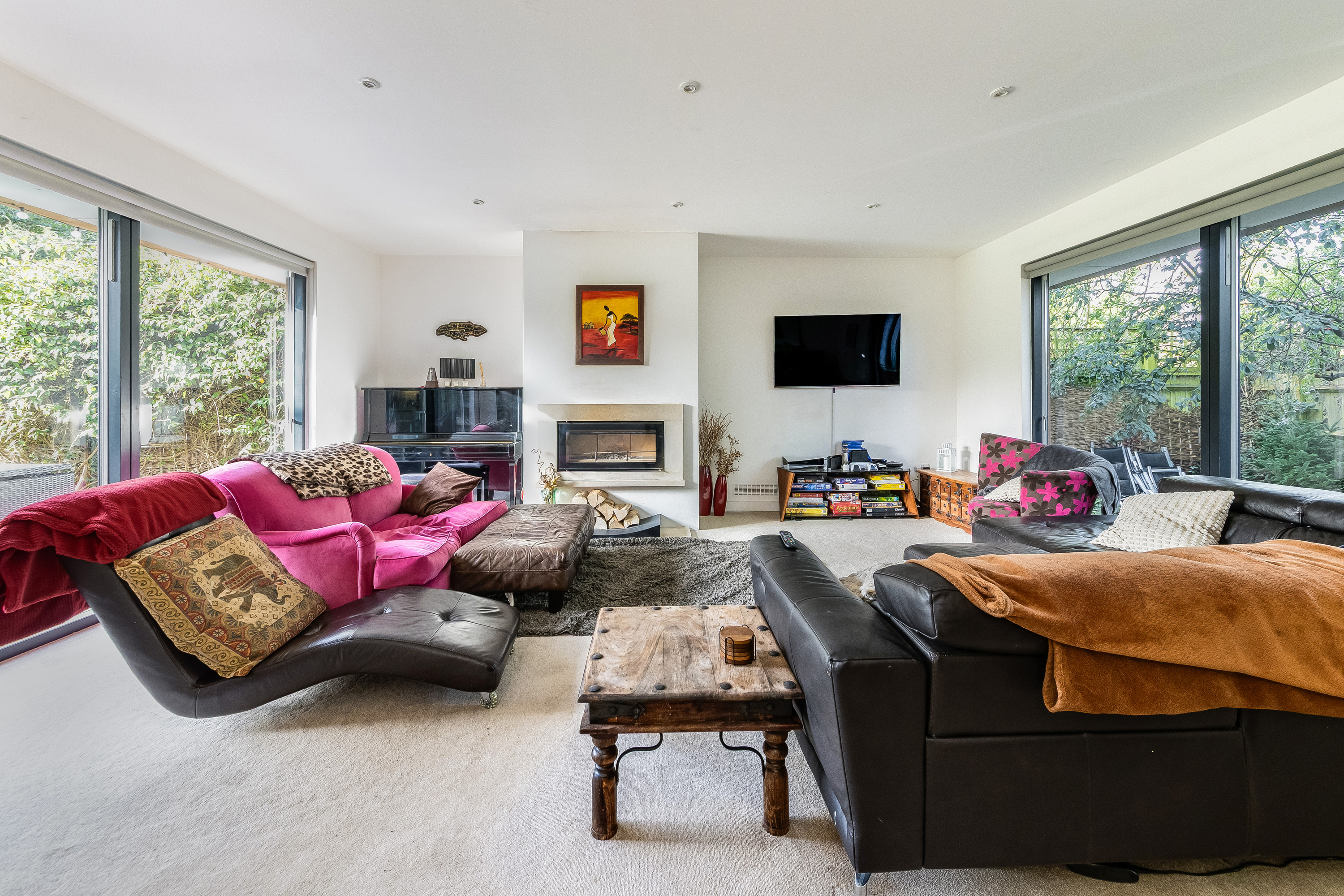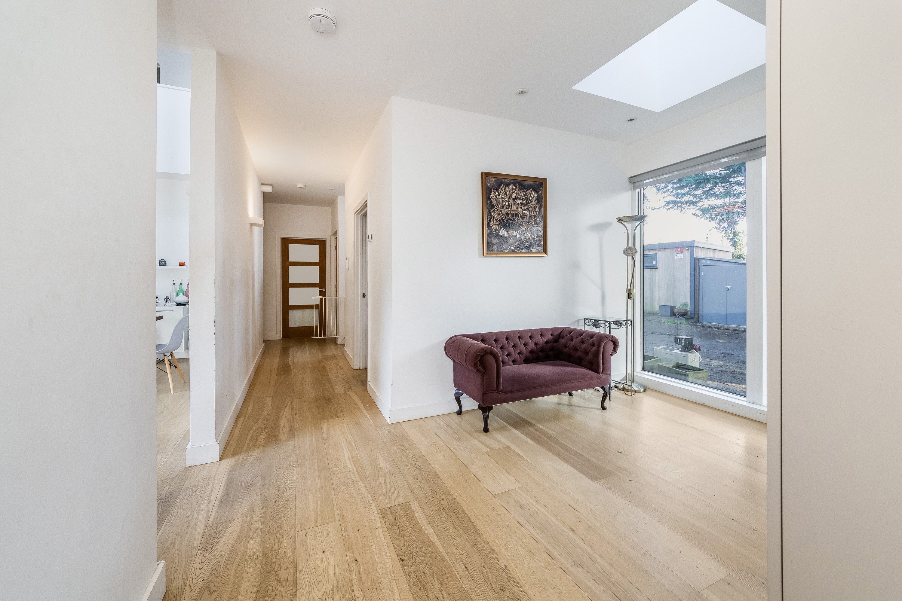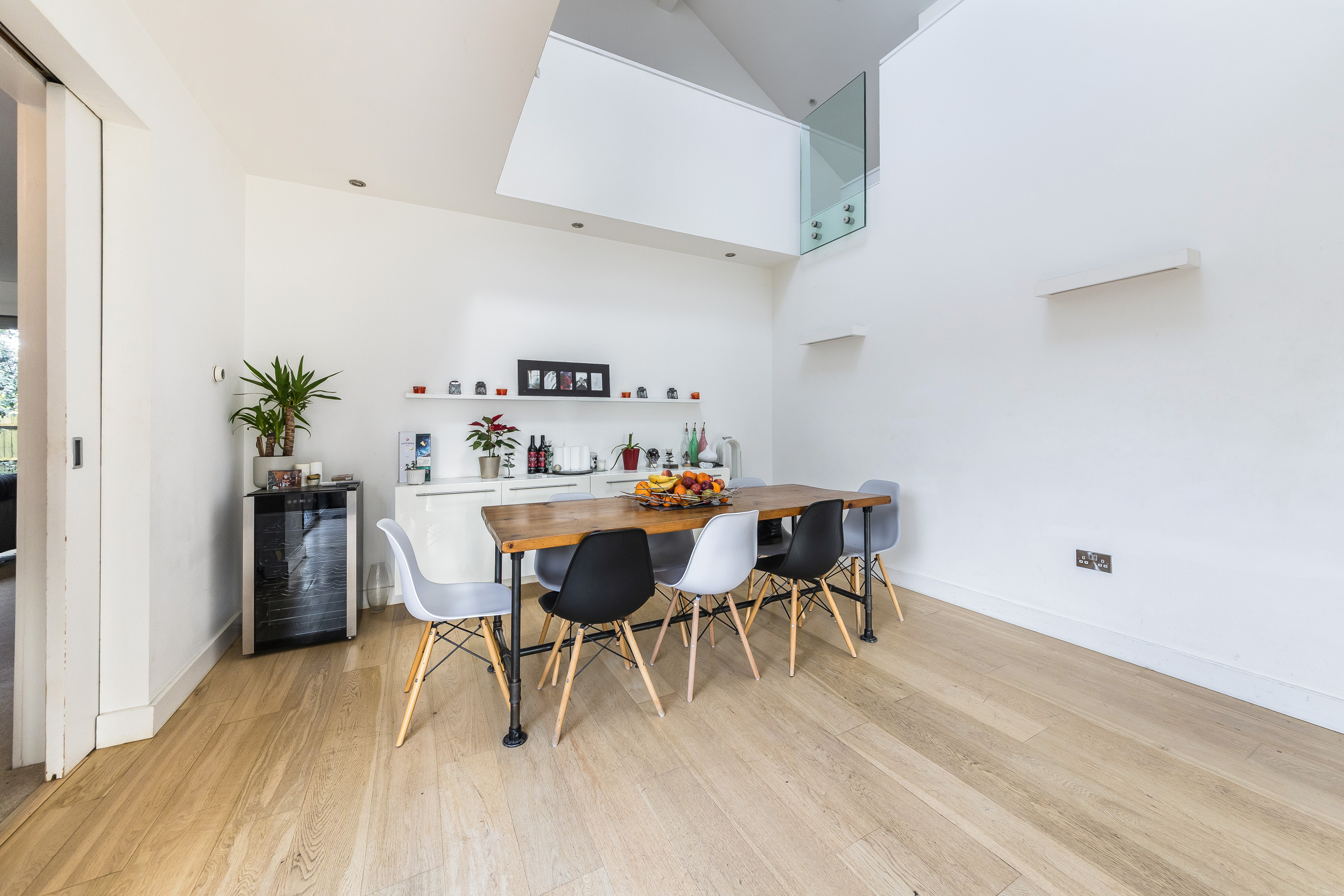 The property was built in 2009 and offers flexible accommodation with over 3000 sq ft of living space, detailing great light levels, soaring ceiling lines and glass elevation detail opening up the key spaces to private gardens.