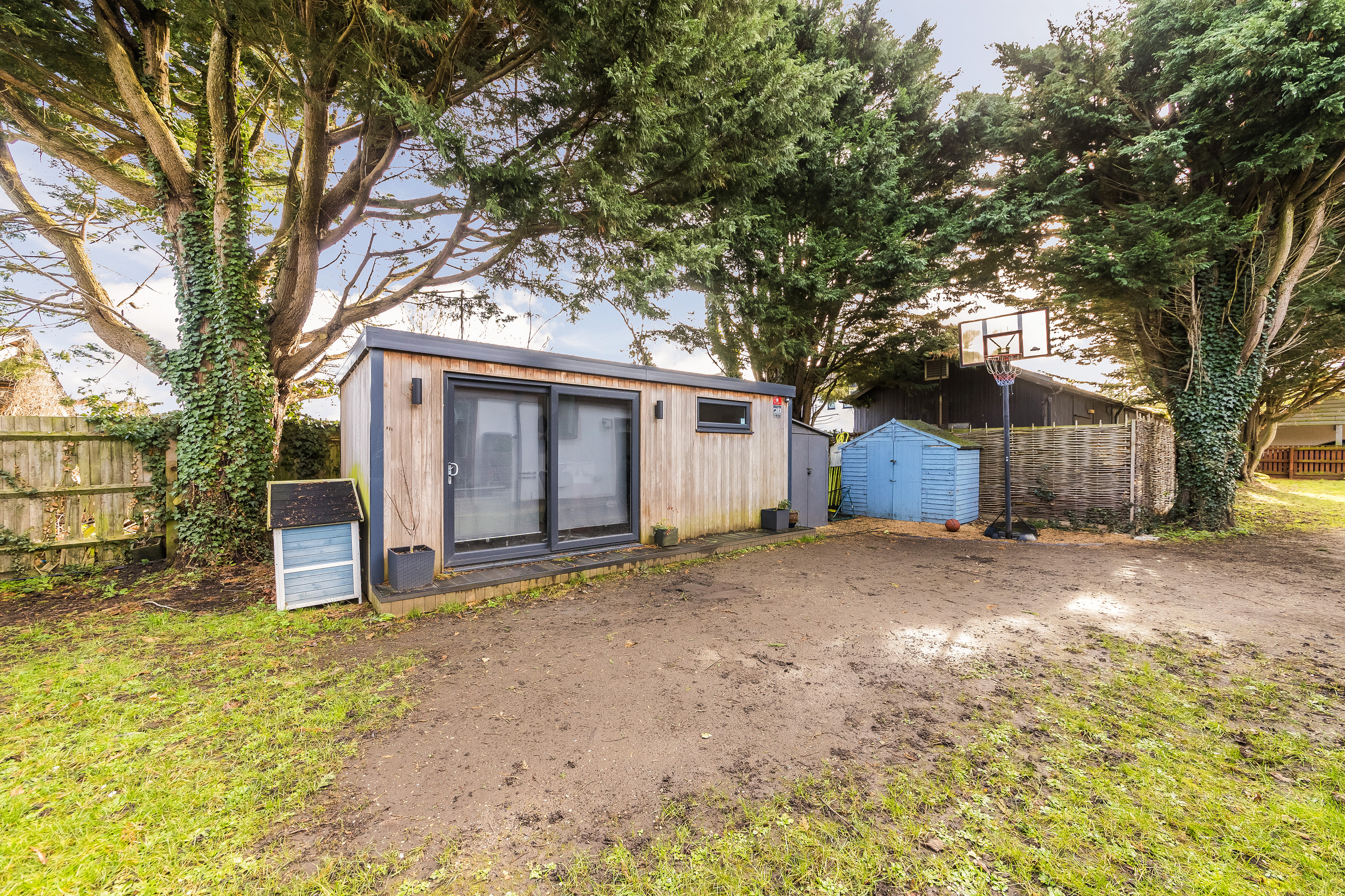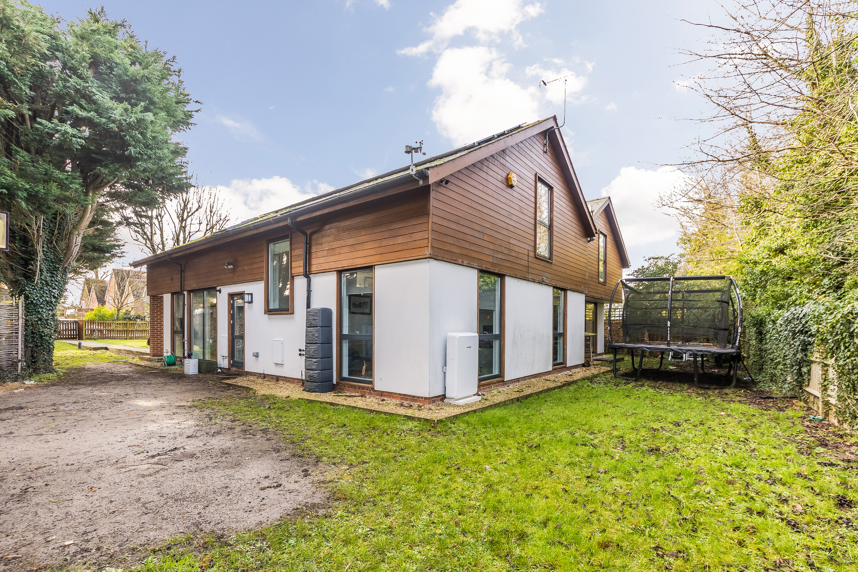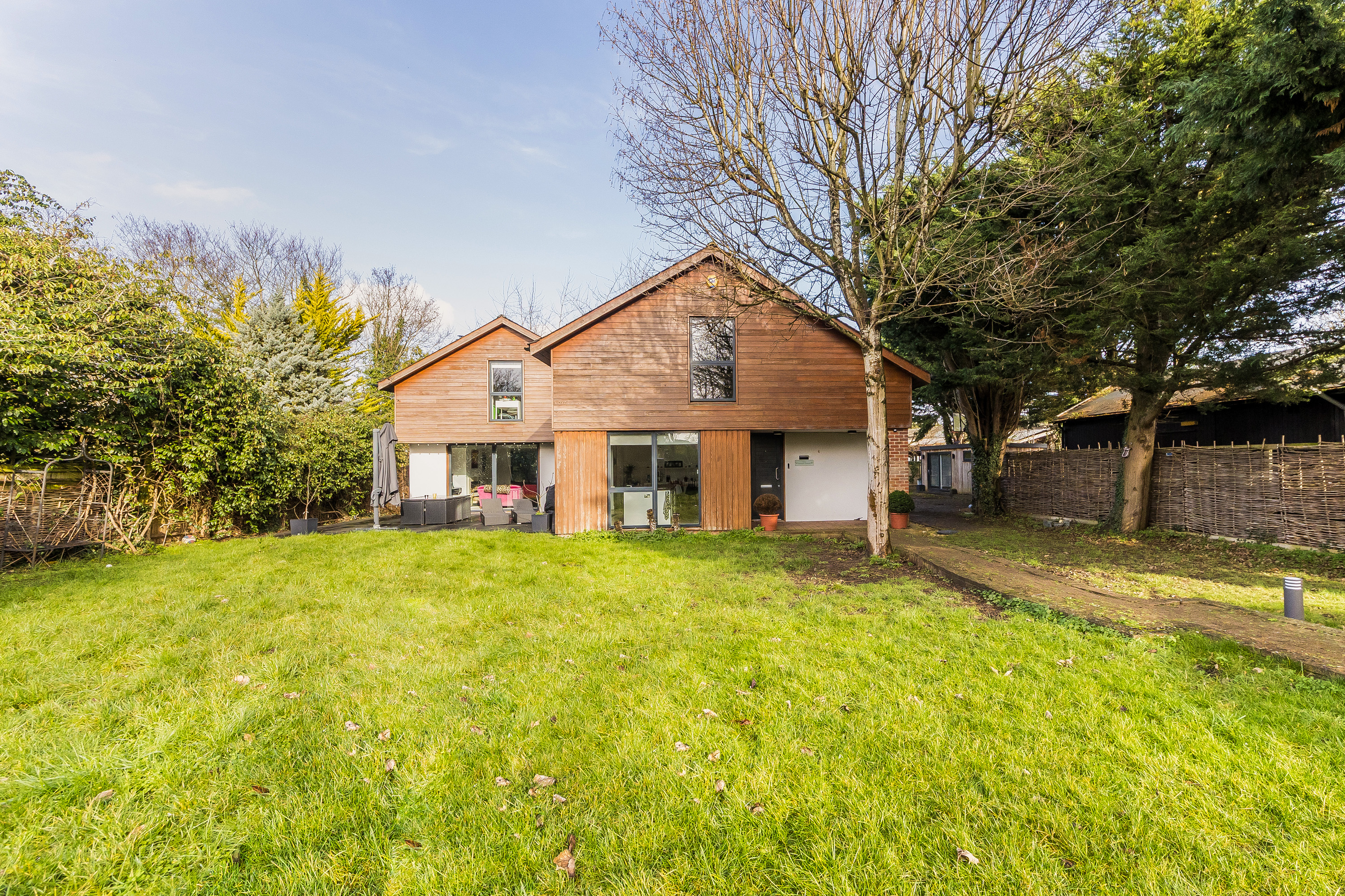 Set in private 0.23 acre gardens the gravelled driveway leads to the garage, carport and parking area at the front of the house and the gardens continue from here and wrap around the property, mainly laid to lawn with decked social spaces and a detached garden office.