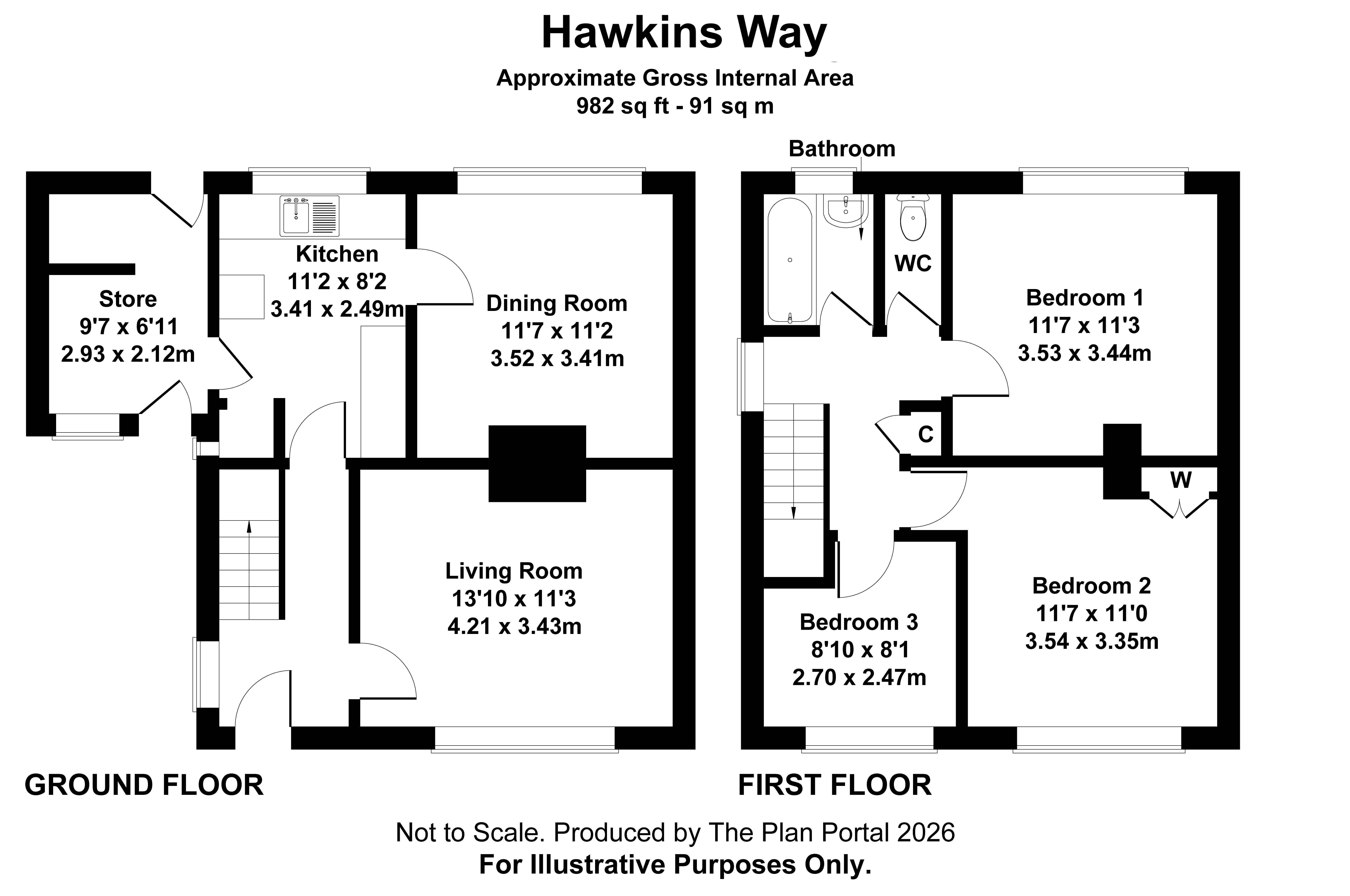 Accommodation consists of a separate hall, two reception rooms, kitchen and brick built store directly accessed from the kitchen. Upstairs there are three bedrooms one with fitted wardrobes, bathroom and separate W.C.